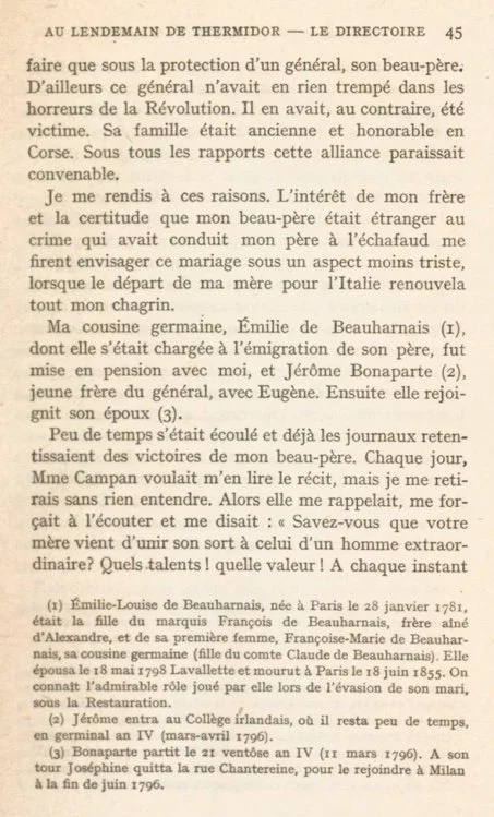 My first cousin Emilie de Beauharnais whom mother had taken care of after my uncle François's departure from France, was sent to school with me, and Jerome Bonaparte, the General's young brother, was sent to the same school as Eugene.