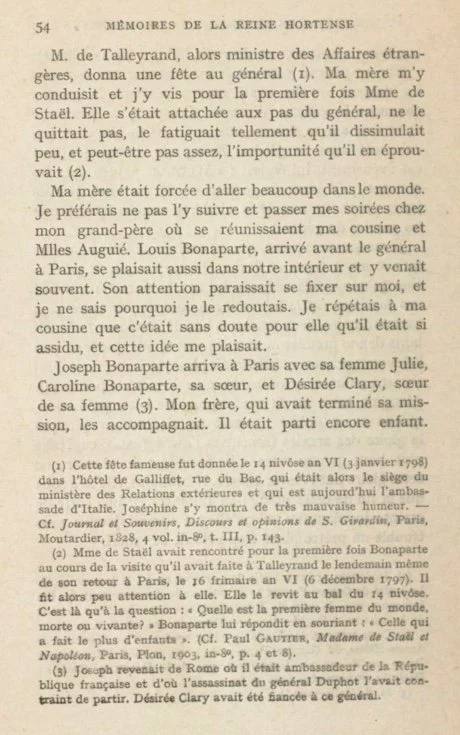 Let’s have another look at Hortense’s Memoirs. If you want to read the book it is available for free at the side bar in English and French. Use the widget on the sidebar to translate the text below into pretty much any language.