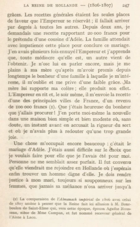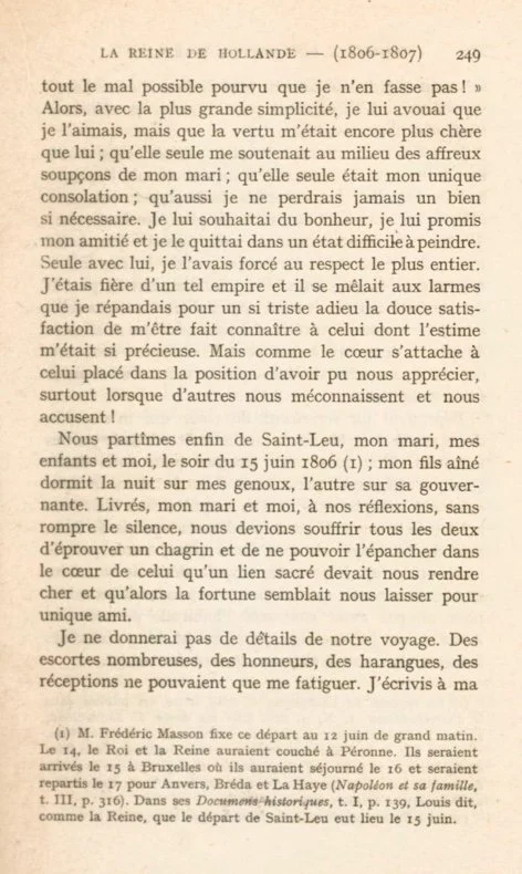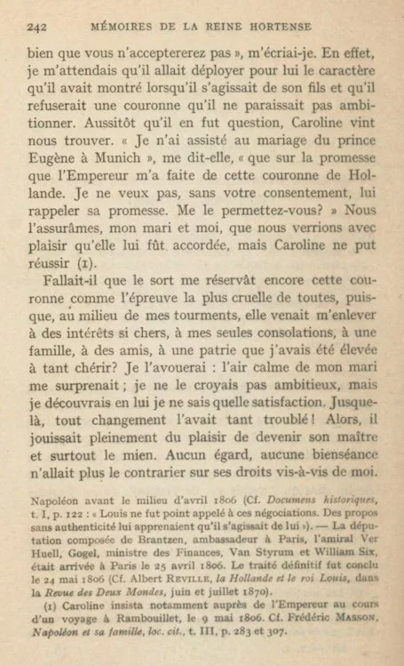 Let’s have another look at Hortense’s Memoirs. If you want to read the book it is available for free at the side bar in English and French. Use the widget on the sidebar to translate the text below into pretty much any language.