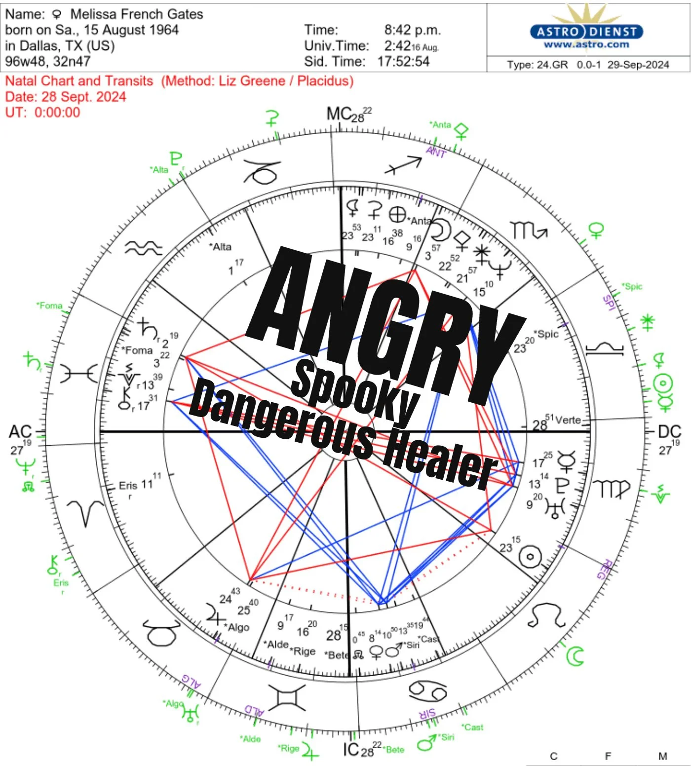 Before we looked at Halle Berry’s chart. She was born 1 second before Napoleon’s birthday and Melissa’s birthday is Napoleon’s birthday - August 15th.