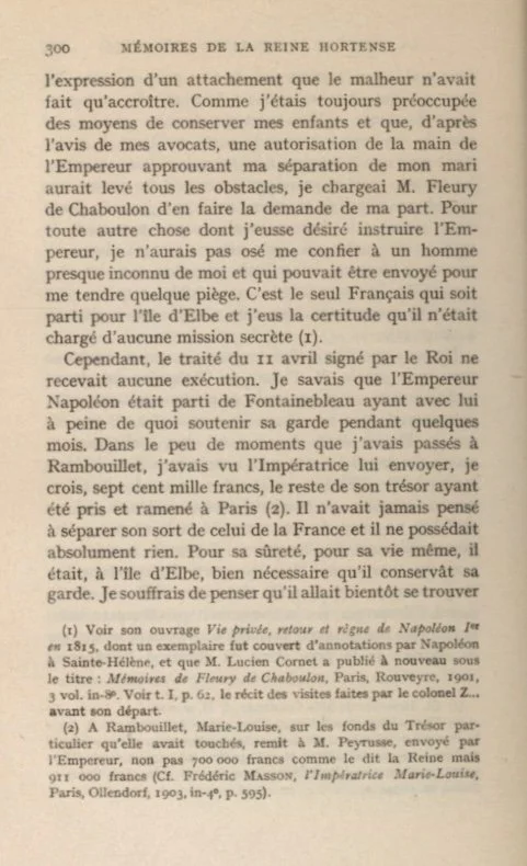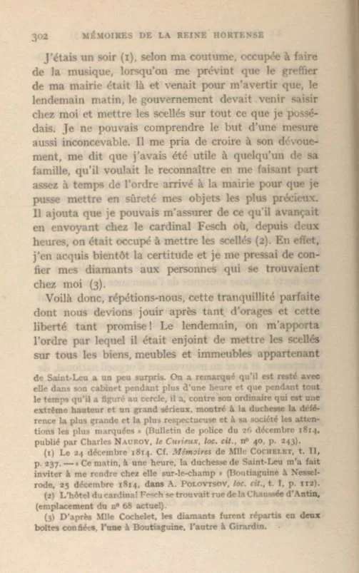 Let’s have another look at Hortense’s Memoirs. If you want to read the book it is available for free at the side bar in English and French. Use the widget on the sidebar to translate the text below into pretty much any language.