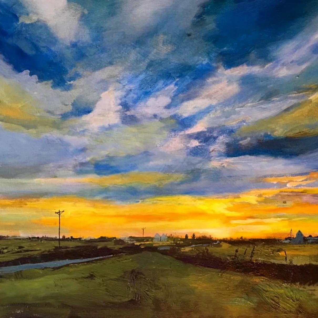 Michael Paraskevas, “Iowa Road Lamont”, 20 by 20”, Acrylic on linen, 2017.
