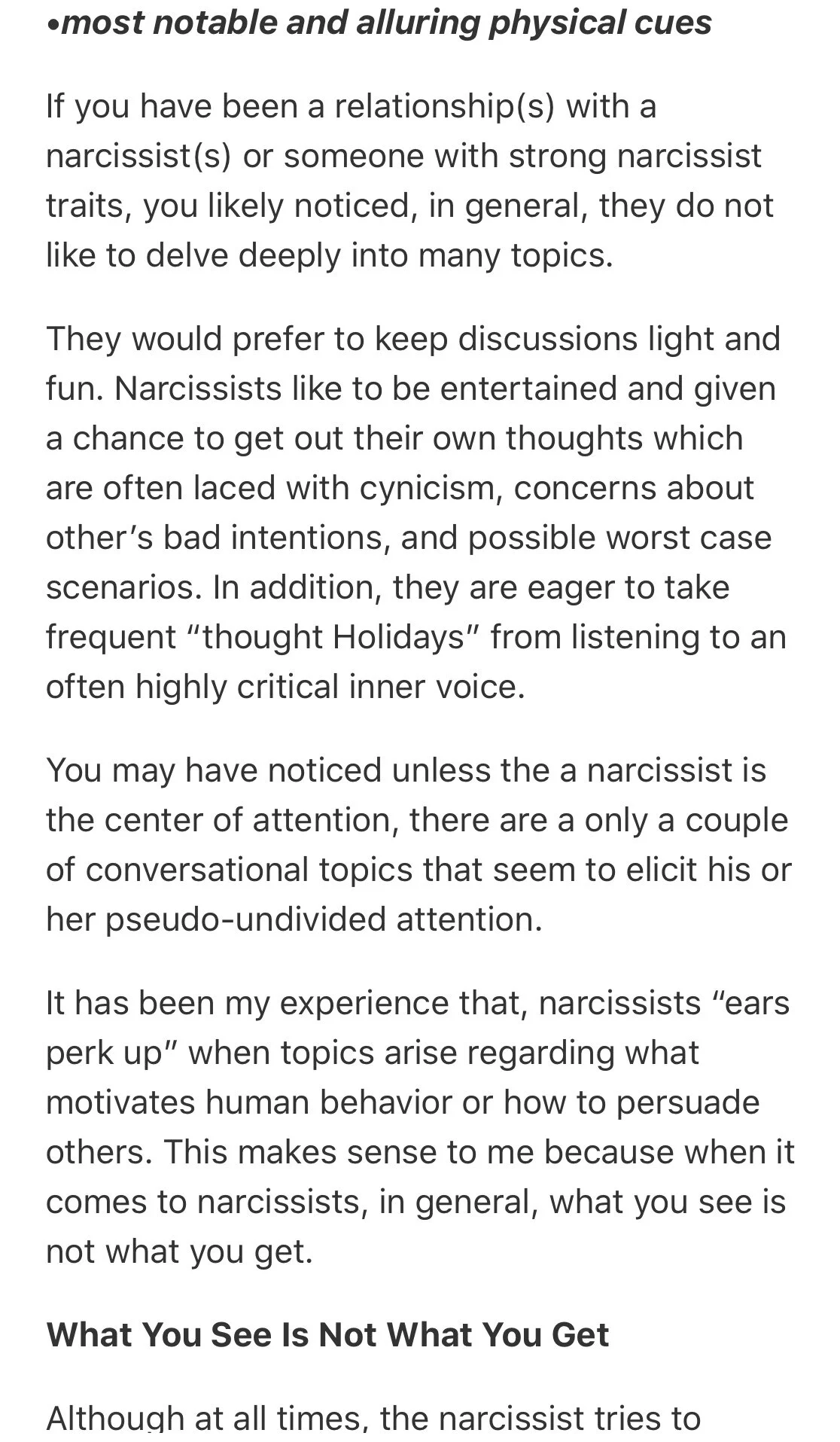 Narcissists wear masks that become easy to see through once one has learned the signs. October 20, 2019