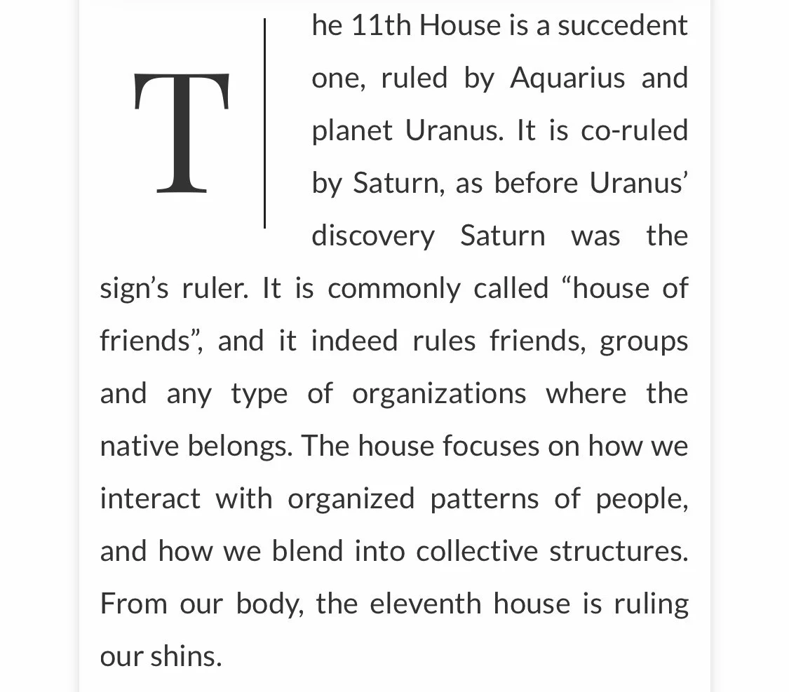 The 11th house is a place of weirdo idealistic brilliant Uranus. Aquarius lives there. Let’s find out more.