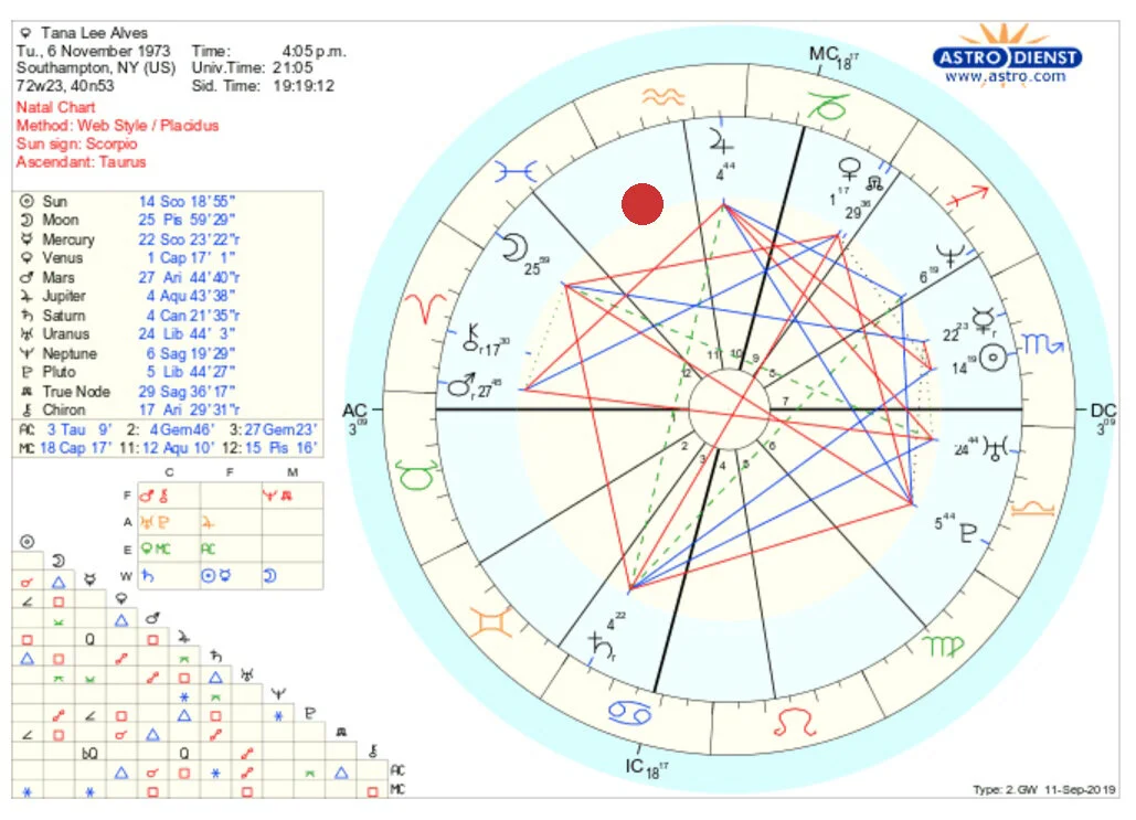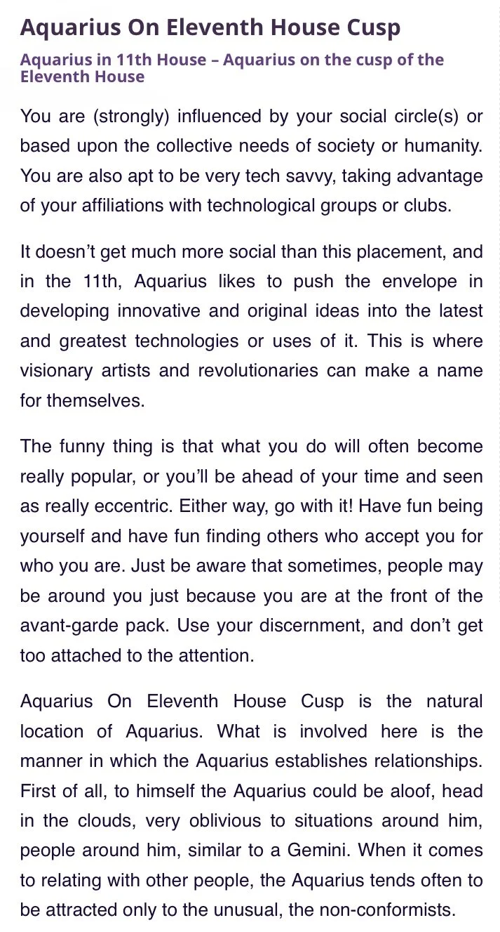 The red dot is in my 11th house. Half of the house is in Aquarius.