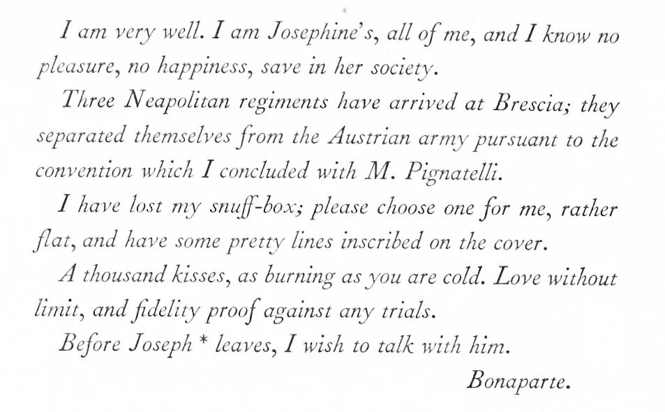 “What belongs to you and what belongs to me mix themselves up together that in my heart there’s no distinction.“ December 11, 2019 Napoleon continues in the dream of his love for Josephine. The memoirs so far are available here.Napoleon’s intimate letters can be found here.