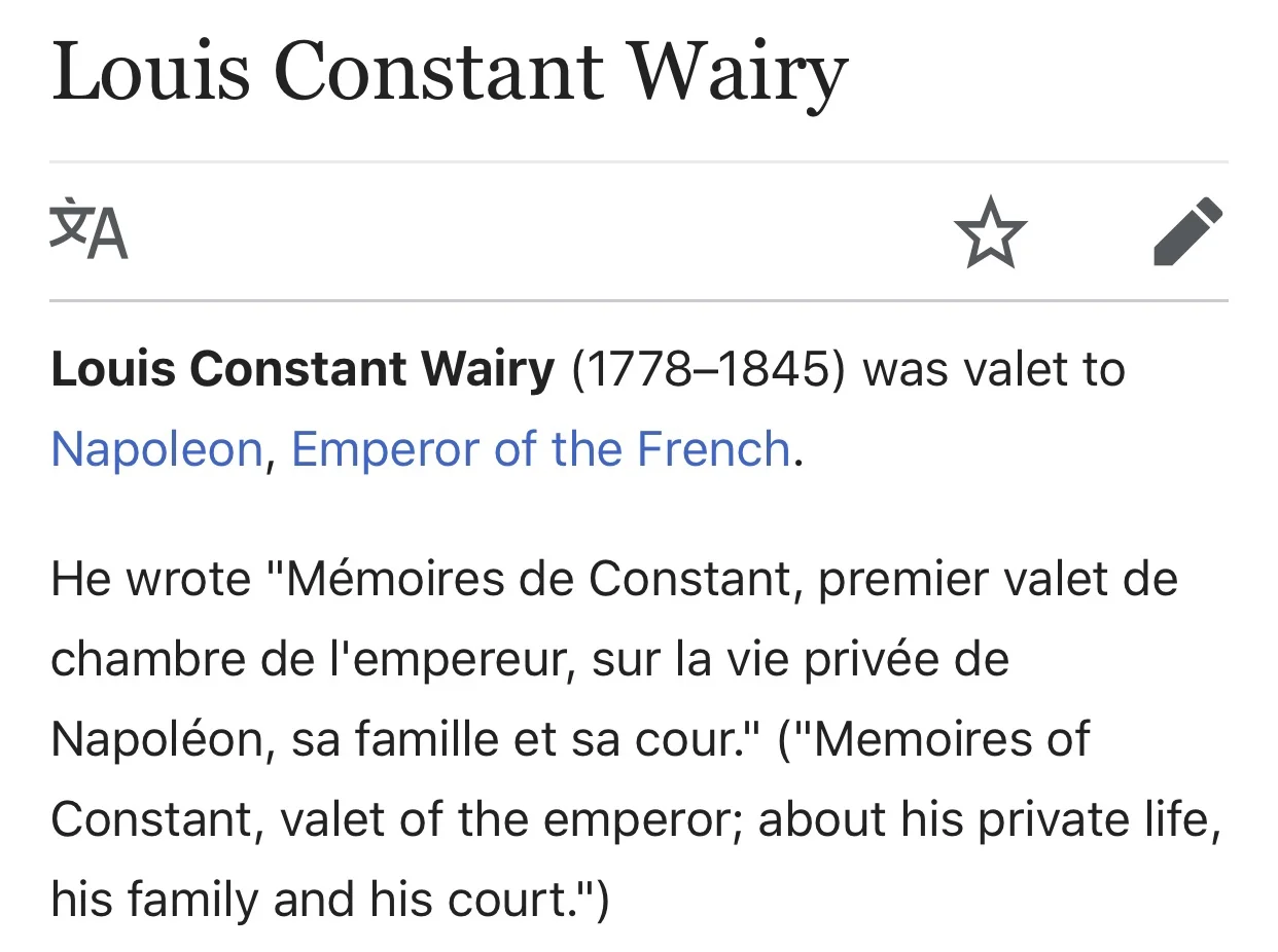 The memoirs of Fain about Napoleon are over! The memoirs of Napoleon’s valet Constant start tomorrow. July 10, 2019