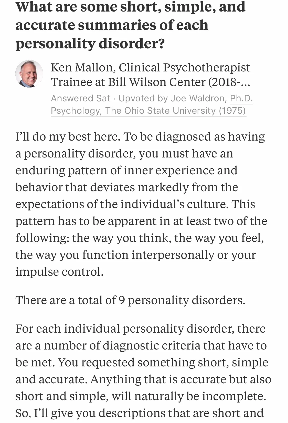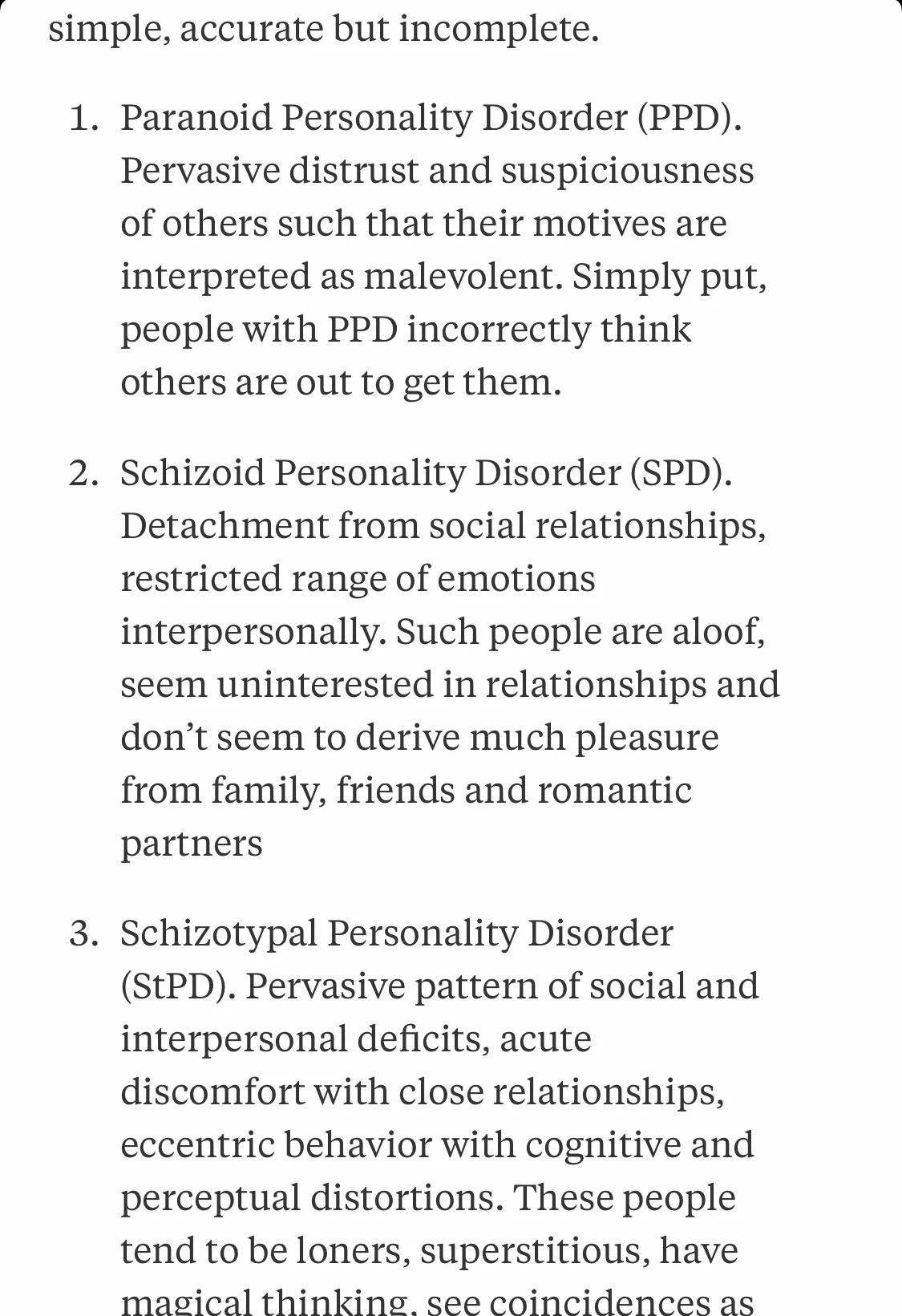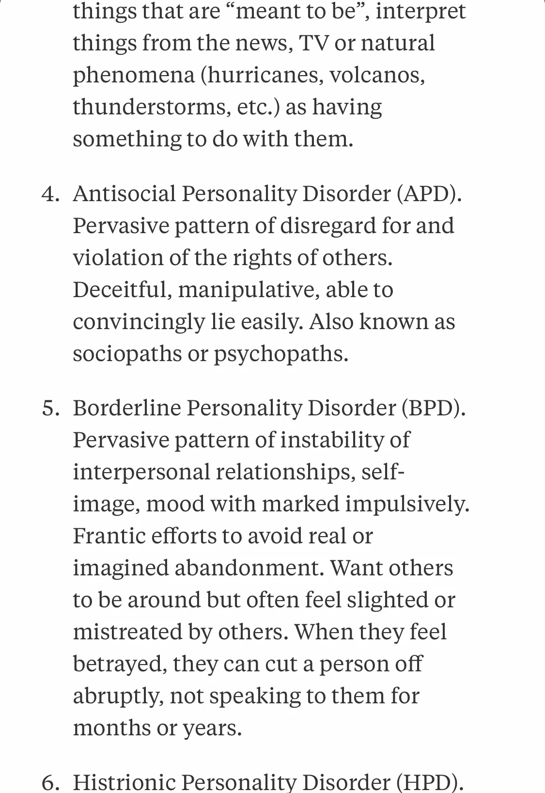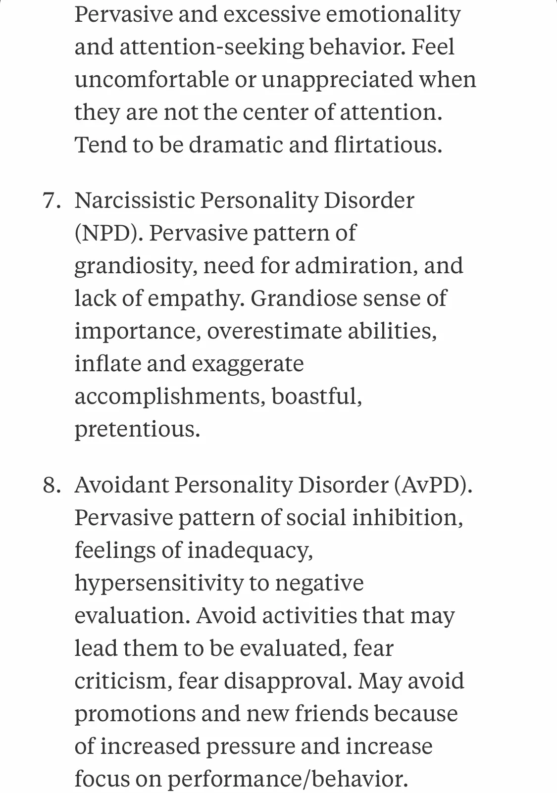 A brief description of personality disorders