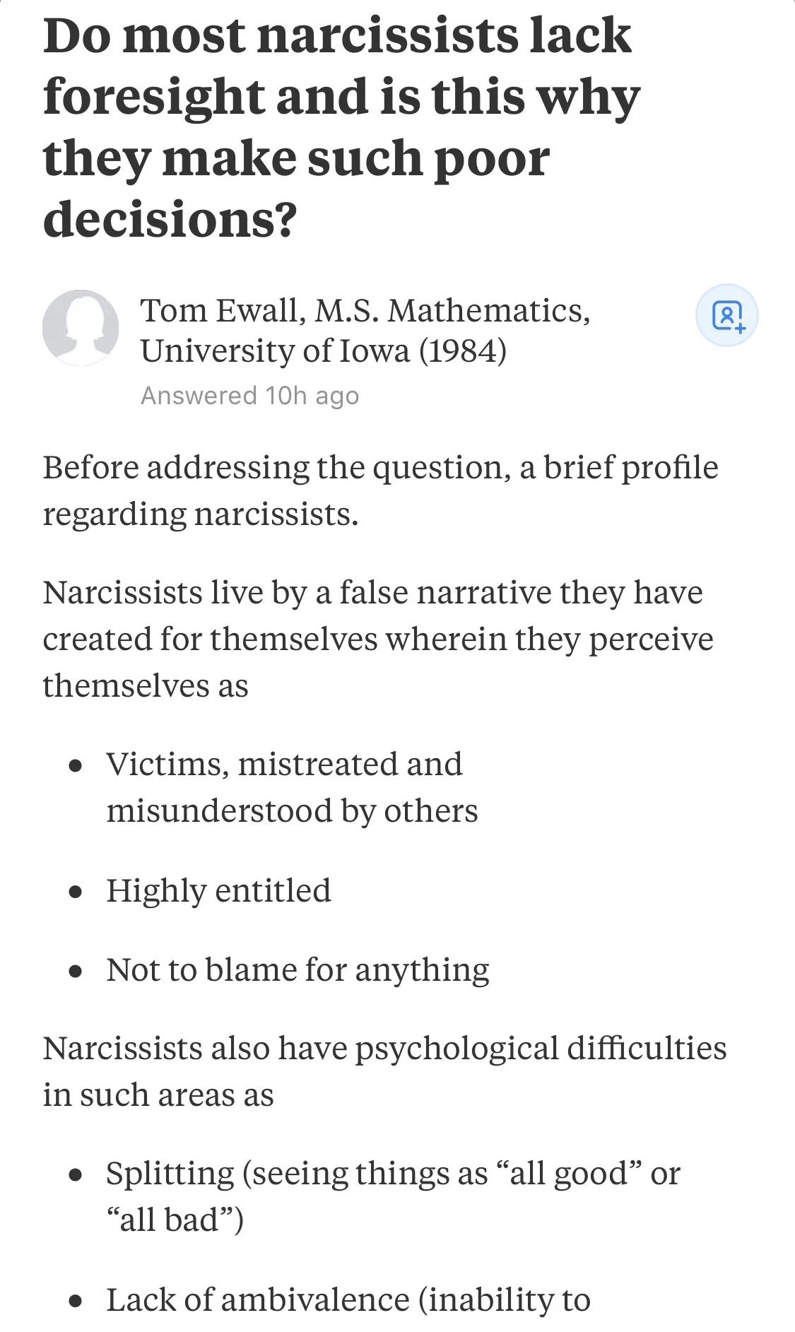 ← I post stories about narcissists to show how similar they are to each other. I hope this will help the public identify them better.
