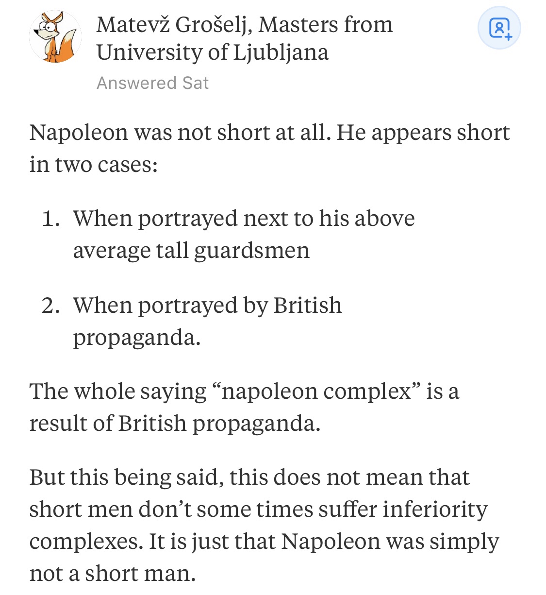 Given my interest in Napoleon, I’ve heard innumerable times about how he was a tiny angry man with something to prove - another Hitler. These “thoughts” were CLEARLY deliberately programmed into a mostly uneducated public ON PURPOSE but why?