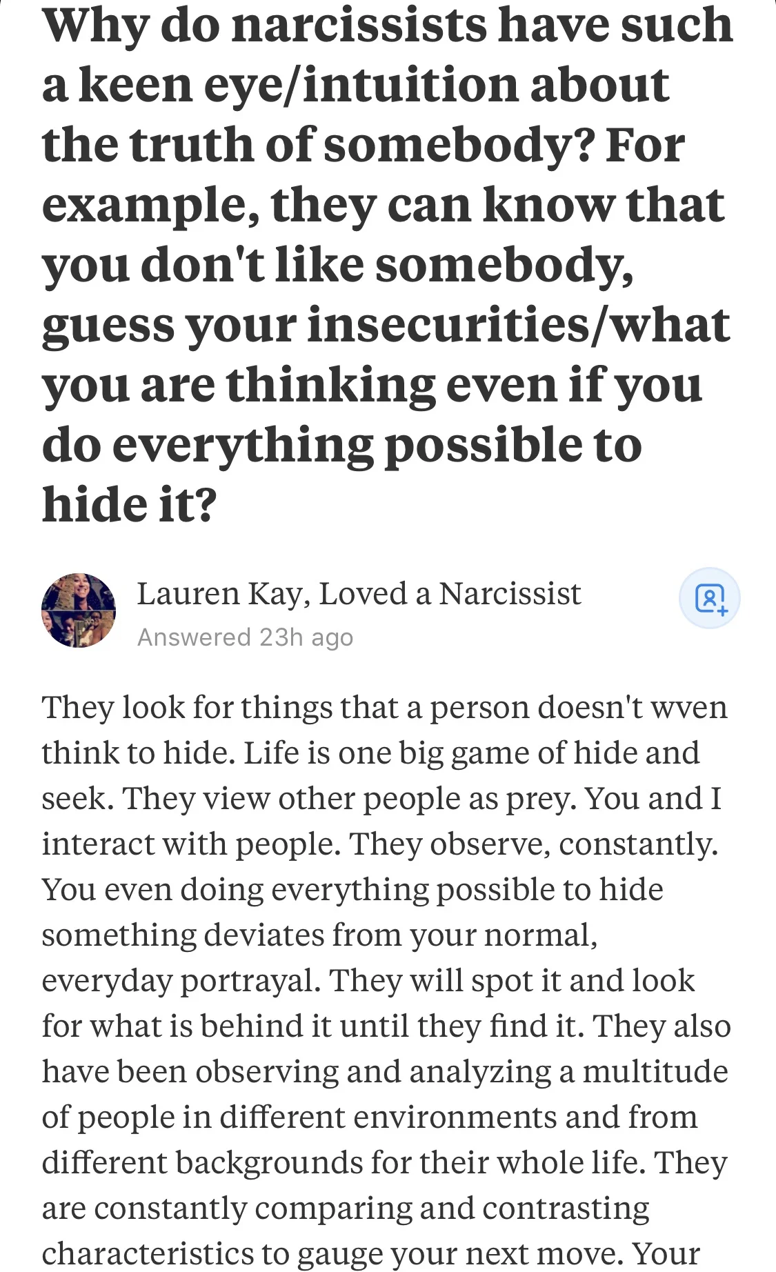 When a narcissist targets a person, it is a very creepy feeling like one is being assessed for weaknesses August 26, 2019