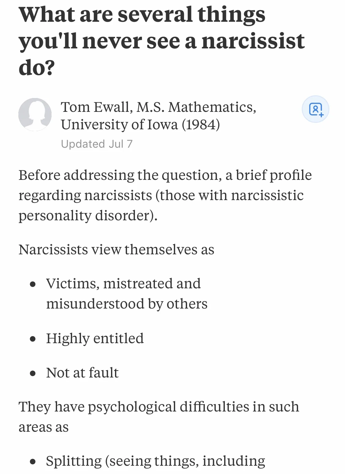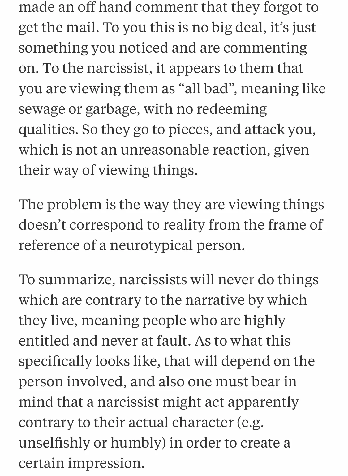 I wish I knew how to really help them but nothing I have ever tried really did help unfortunately. My best terrible move with this type is boundaries to keep them away. I sincerely wish healing for all. I simply have learned by now that only people who really want fully truthful help - have the capacity to learn and grow as humans.