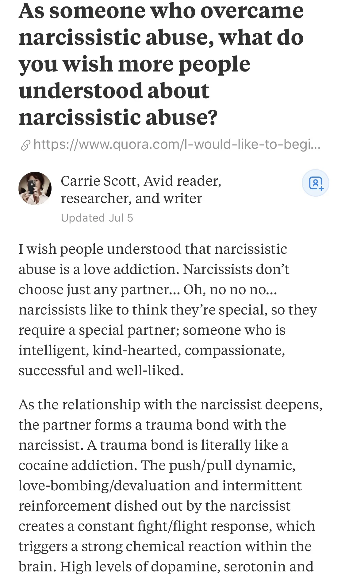 It’s fascinating that every person who discusses narcissistic abuse has almost the same exact story. How are narcissists so similar to each other? August 9, 2019