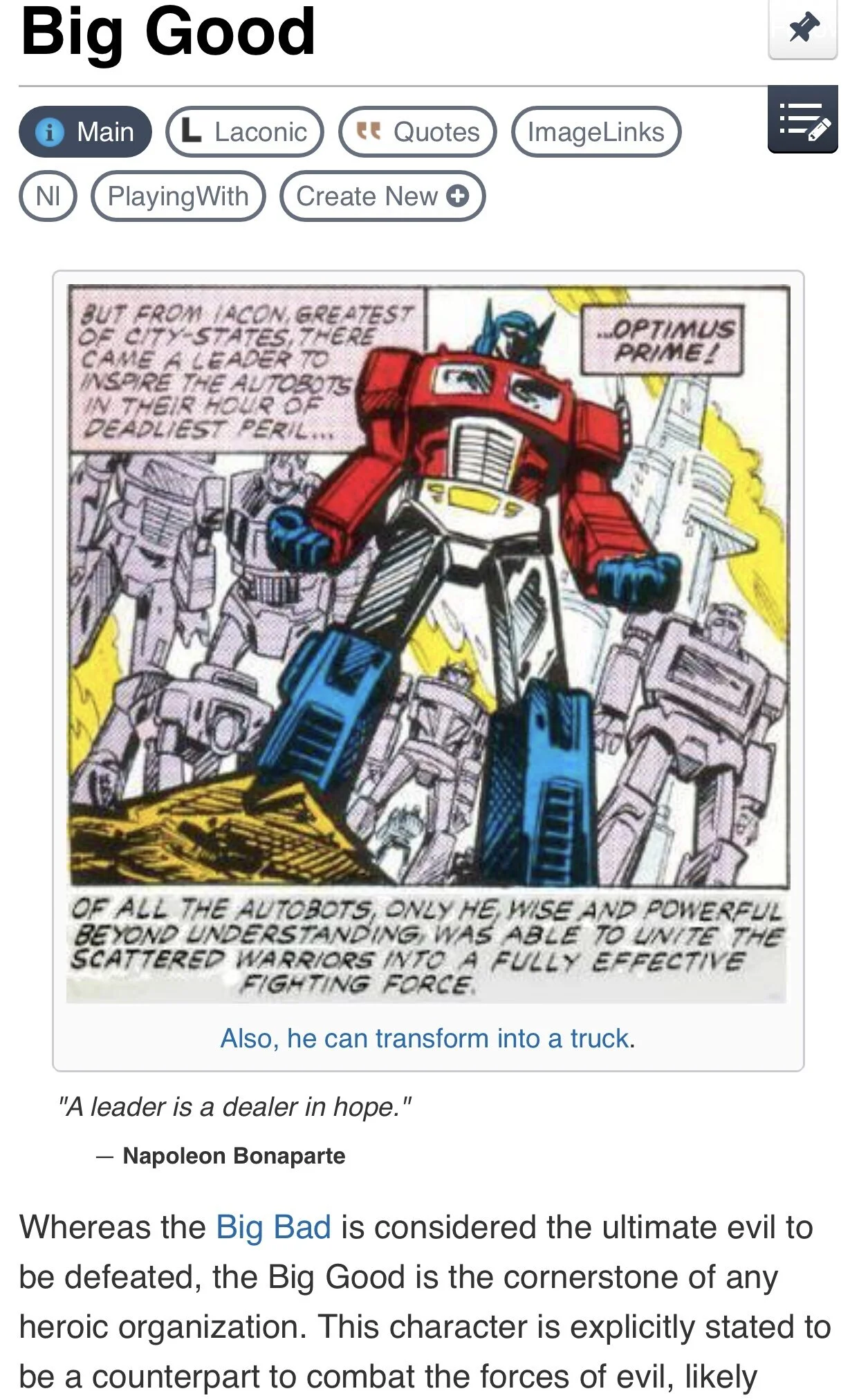 The words below about the Big Good may also be of note.