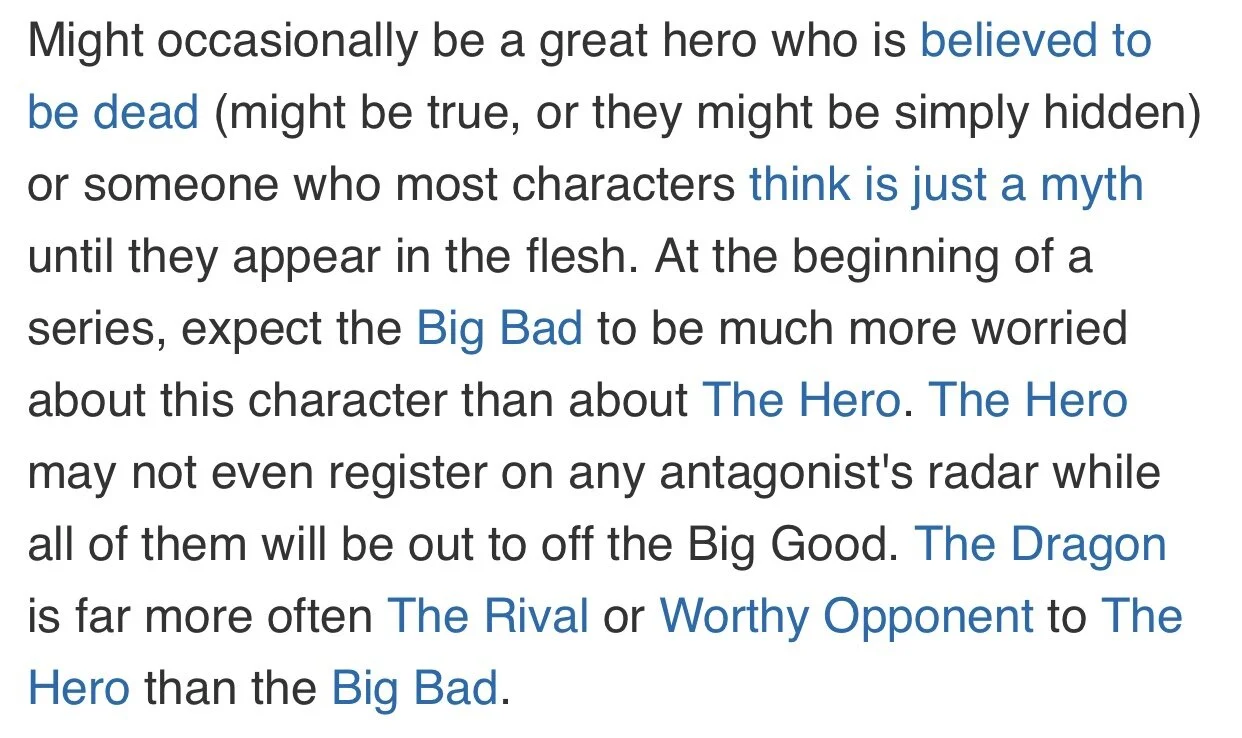 The Big Bad is always obsessed with the Big Good.