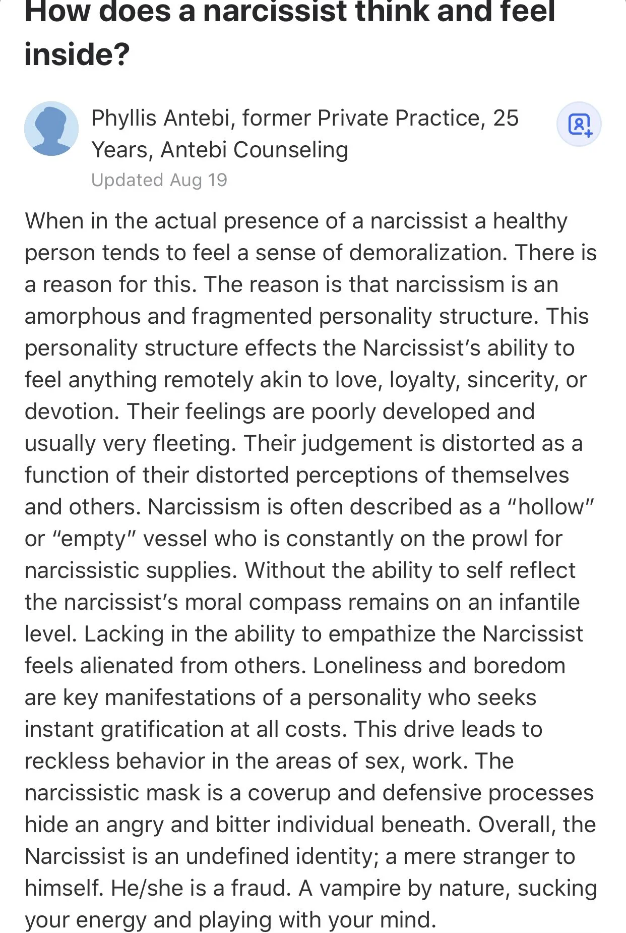 Qu’est-ce qu’un narcissique pense et ressent à l’intérieur? January 5, 2020 Qu’est-ce qu’un narcissique pense et ressent à l’intérieur?