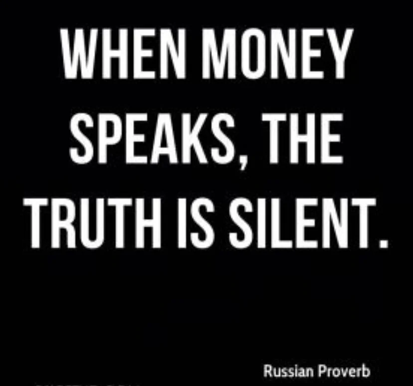 כשכסף מדבר, האמת שותקת. פתגם רוסי