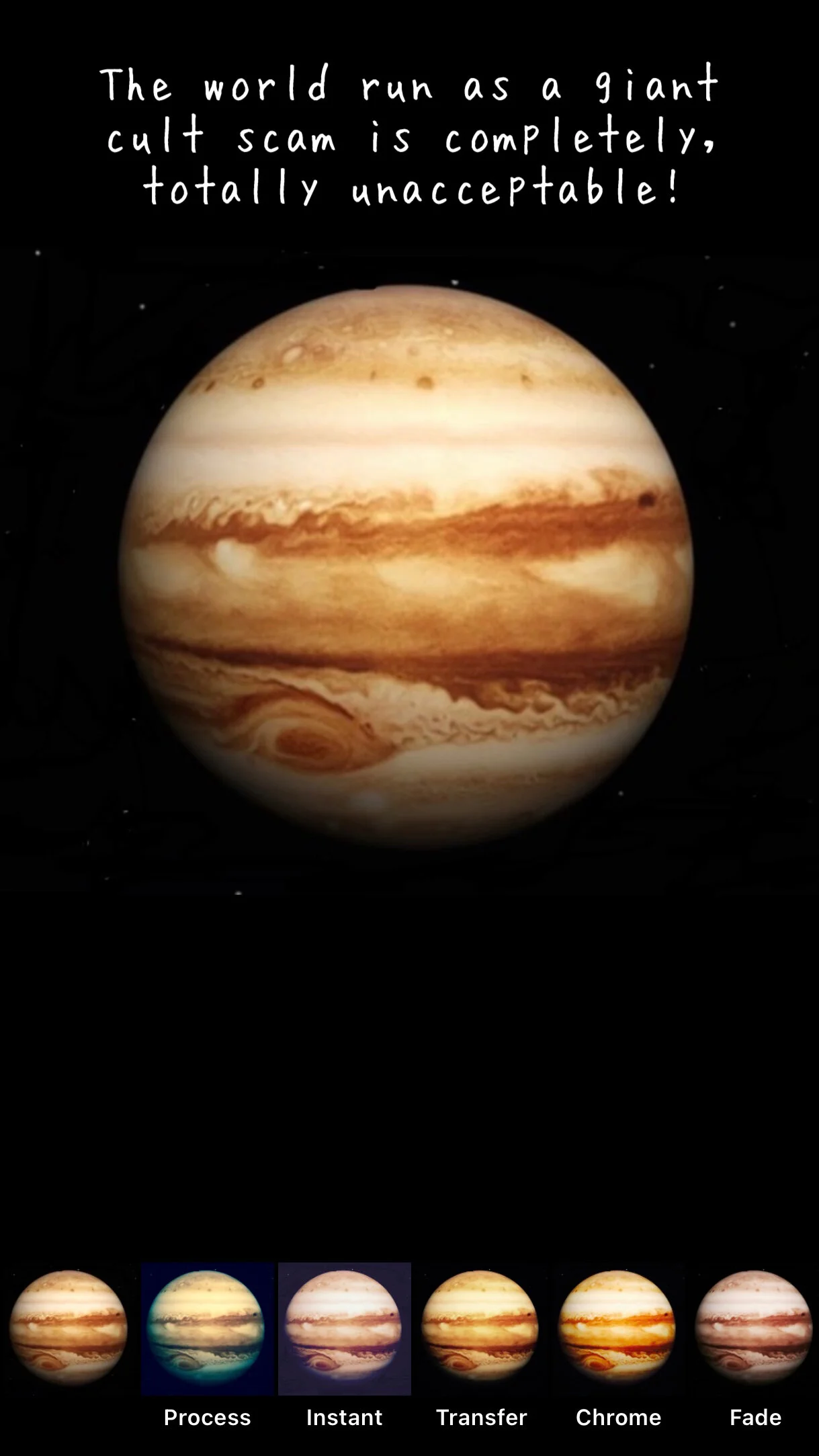 ¡Que el mundo funcione como una estafa de culto gigante es total, totalmente inaceptable!