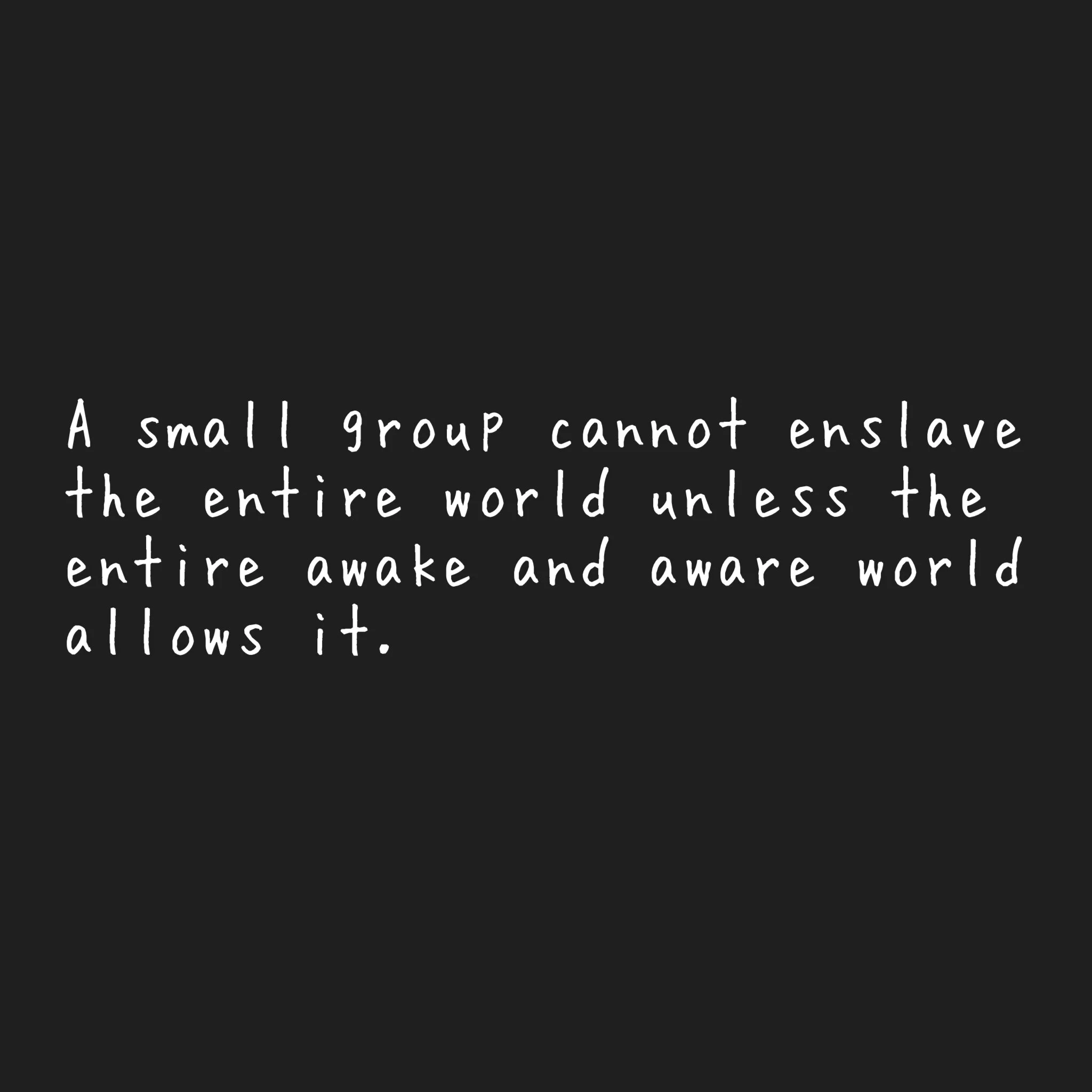 Eine kleine Gruppe kann nicht die ganze Welt versklaven, es sei denn, die gesamte wache und bewusste Welt erlaubt es.