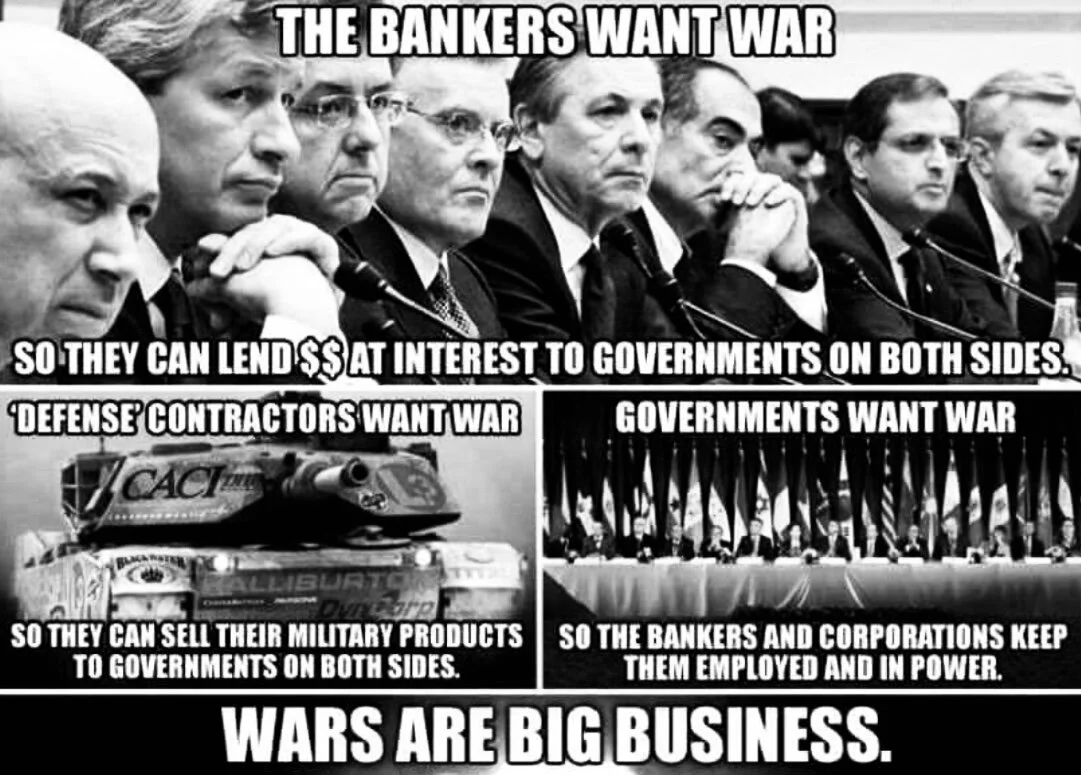 बैंकर्स युद्ध चाहते हैं ताकि वे दोनों पक्षों को ब्याज पर पैसा दे सकें।