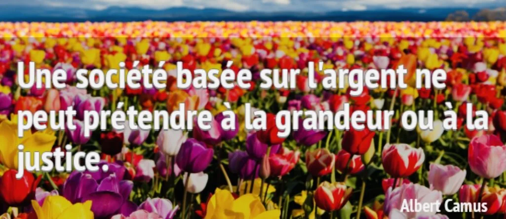 חברה המבוססת על כסף אינה יכולה לתבוע גדלות או צדק. אלבר קאמי
