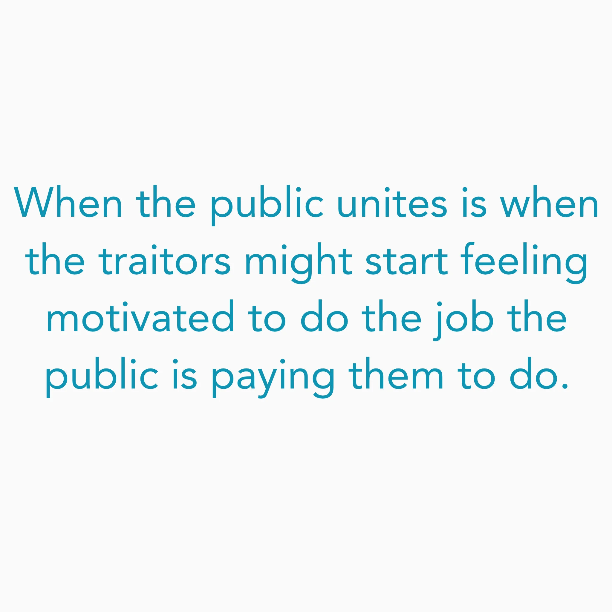 When the public unites is when the traitors might start feeling motivated to do the job the public is paying them to do.