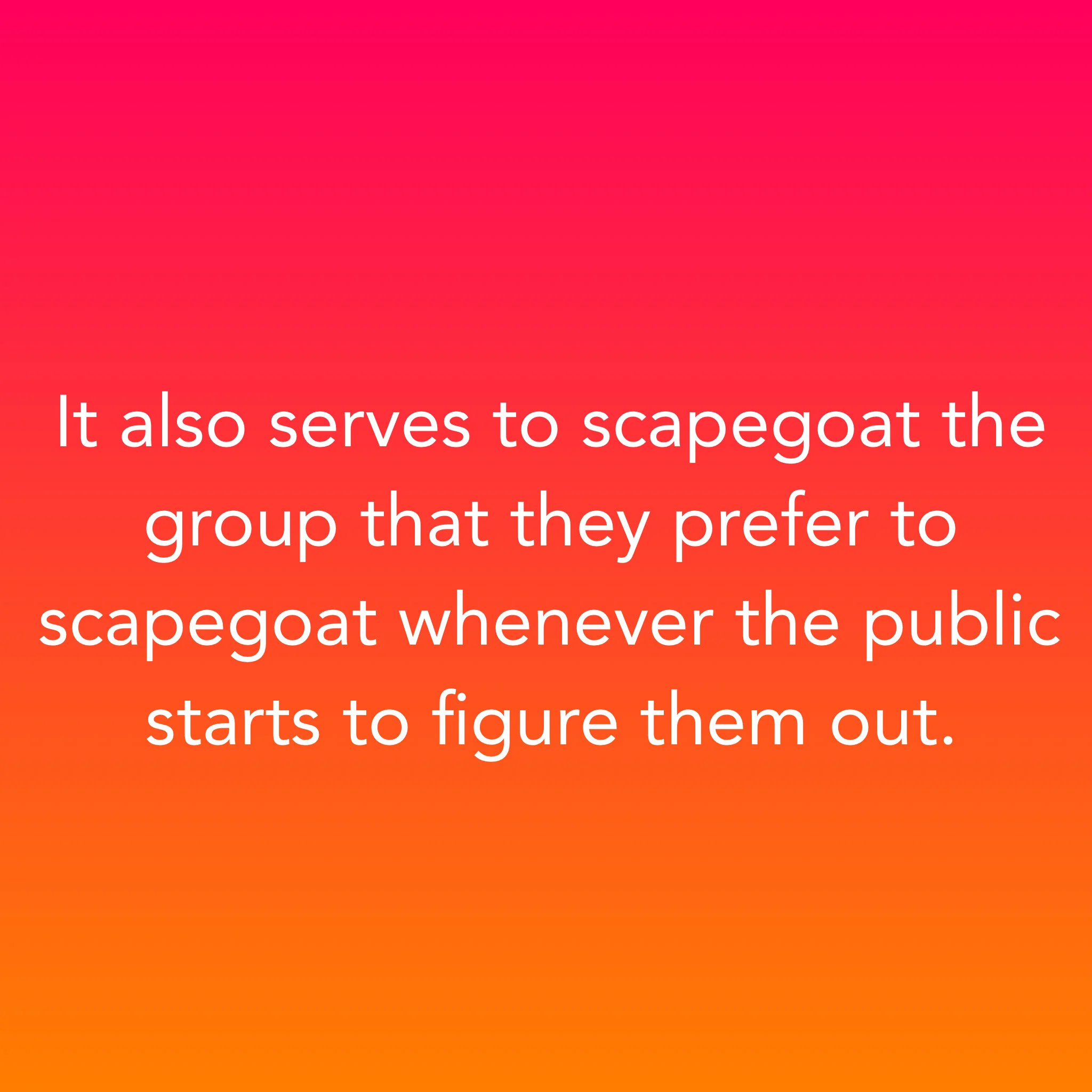 It also serves to scapegoat the group that they prefer to scapegoat whenever the public starts to figure them out.