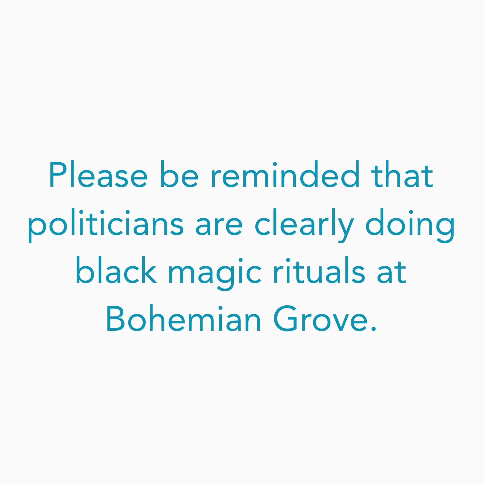 Please be reminded that politicians are clearly doing black magic rituals at Bohemian Grove.