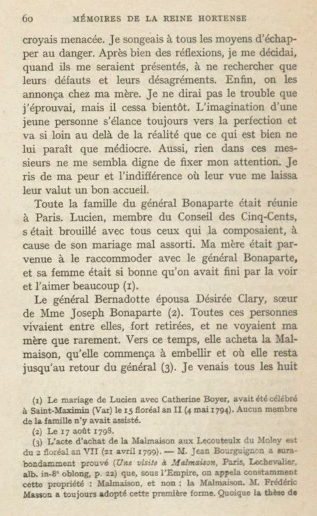In this excerpt, Hortense meets Caroline Bonaparte. She also finds out that her cousin Emilie has married a man she doesn’t love, Lavallette.