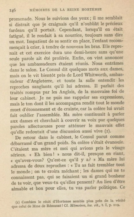Let’s have another look at Hortense’s Memoirs. If you want to read the book it is available for free at the side bar in English and French. Use the widget on the sidebar to translate the text below into pretty much any language.