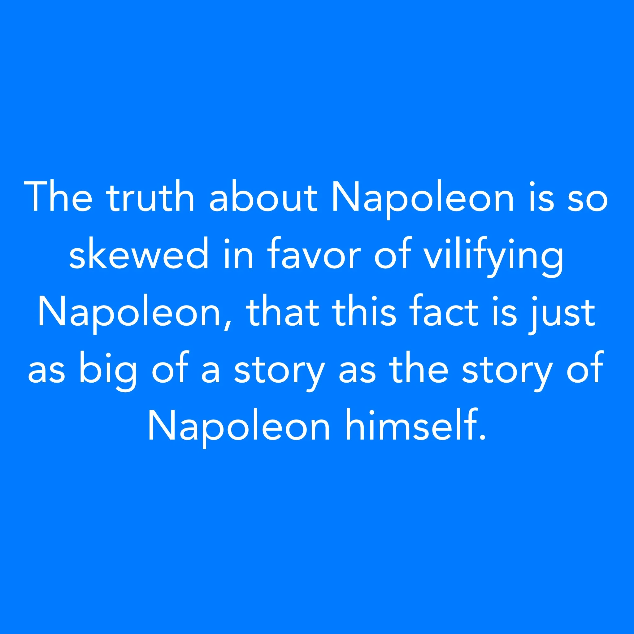 The truth about Napoleon is so skewed in favor of vilifying Napoleon, that this fact is just as big of a story as the story of Napoleon himself.