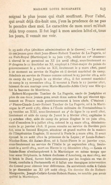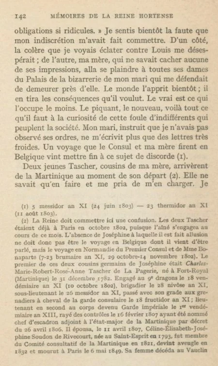 A journey through Belgium which my mother and the Consul undertook finally put an end to this painful situation. As they were leaving, two young men, members of the Tascher family and cousins of my mother, arrived from Martinique.