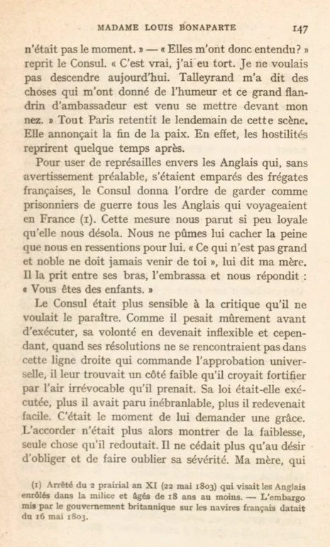 Finally, a message came that the ambassadors were waiting. We entered the drawing-room. The Consul spoke a few words to the ladies, but he soon stepped up to Whitworth, the English Ambassador, and the entire room heard the bitter reproaches with which he assailed him.