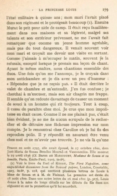 Later, Murat chose him as aide-de-camp. He was received in our family circle without ceremony, and his frivolous disposition, in spite of his mental gifts and good looks, had made me consider him merely as an agreeable guest and not at all a dangerous one.