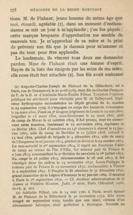 Sure enough Monsieur de Flahaut's name did appear frequently. I could not understand what this meant. A mystery haunts one’s mind till it has been solved. I wanted an explanation and finally discovered that my husband without saying a word to me had given orders that the young man was not to be admitted.