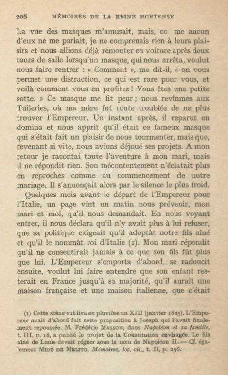 Let’s have another look at Hortense’s Memoirs. If you want to read the book it is available for free at the side bar in English and French. Use the widget on the sidebar to translate the text below into pretty much any language.