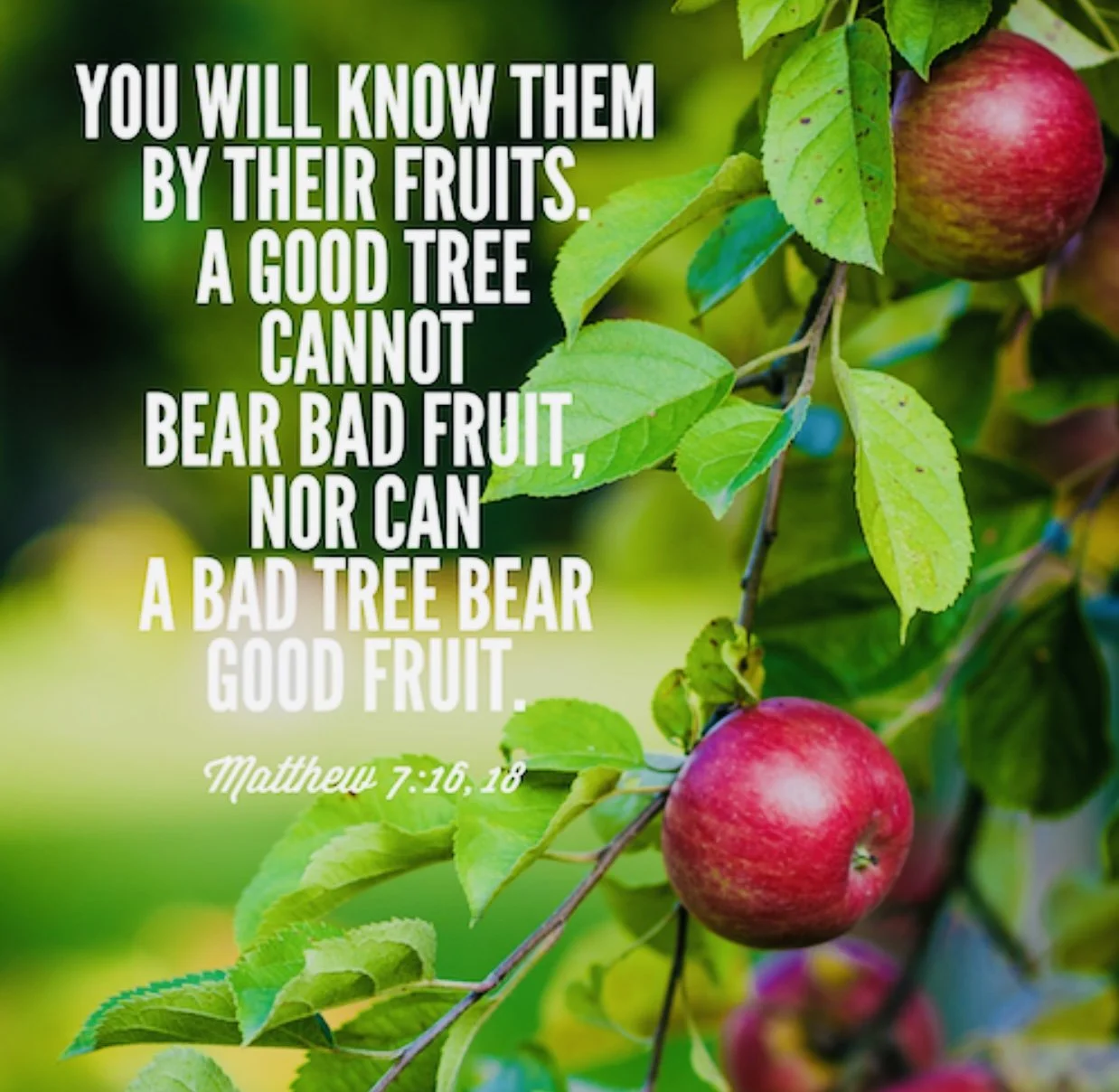 You will know them by their fruits. A good tree cannot bear bad fruit, nor can a bad tree bear good fruit.