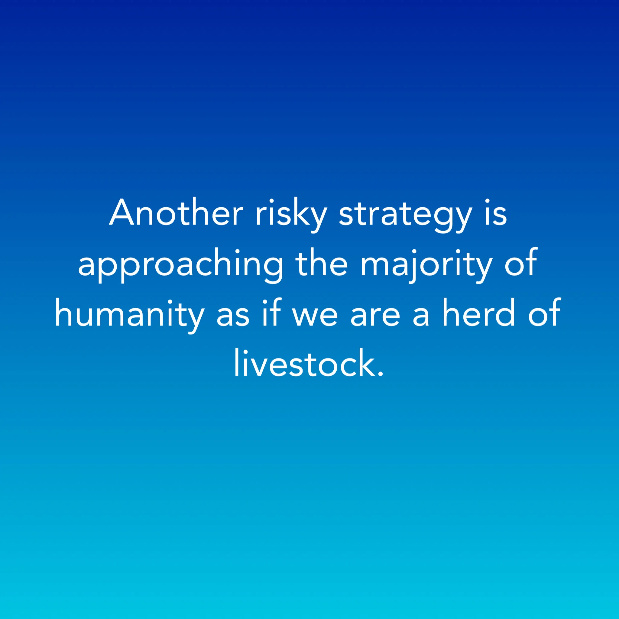 Une autre stratégie risquée consiste à approcher la majorité de l'humanité comme si nous étions un troupeau de bétail.
