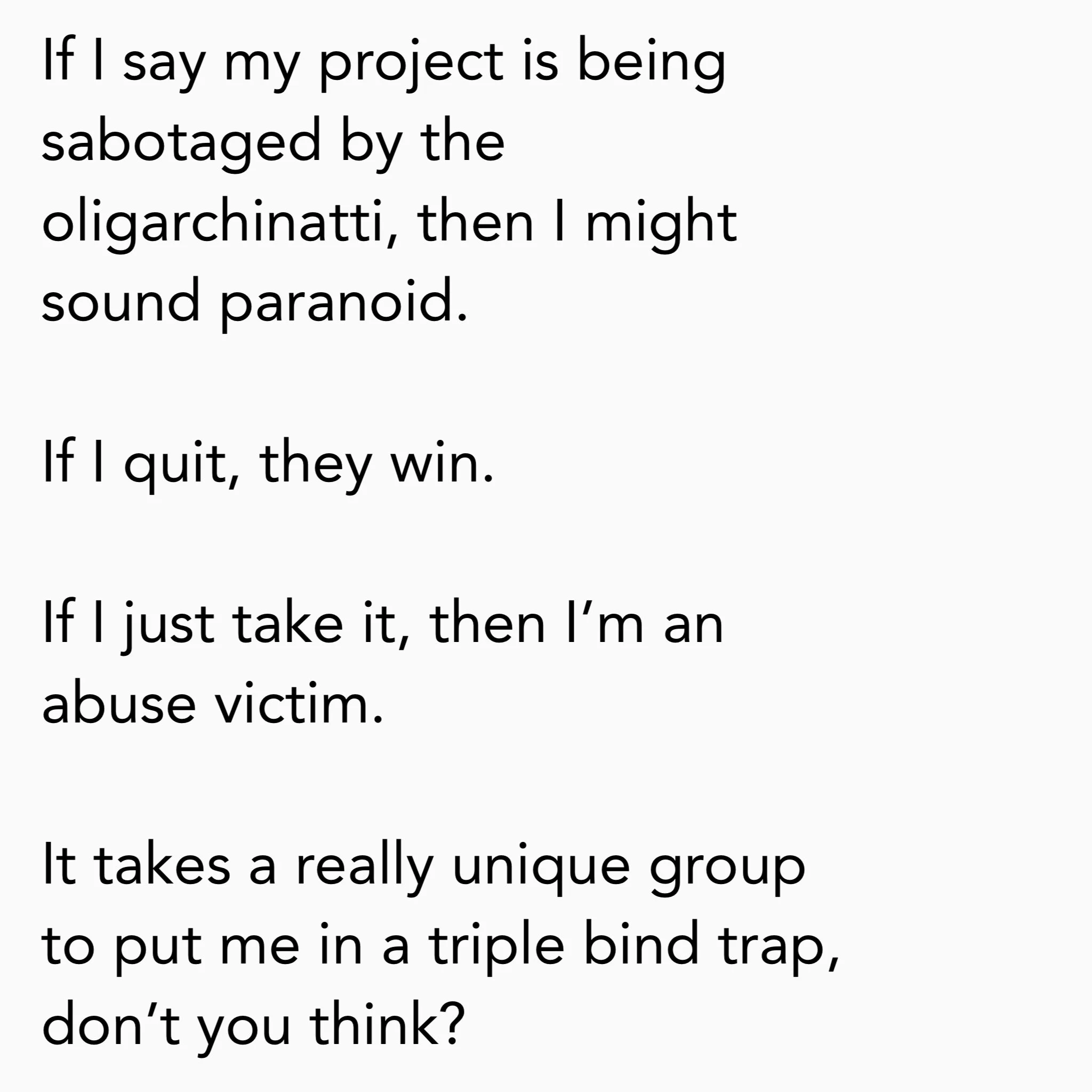 Wenn ich sage, mein Projekt wird von den Oligarchinatti sabotiert, dann klinge ich vielleicht paranoid.