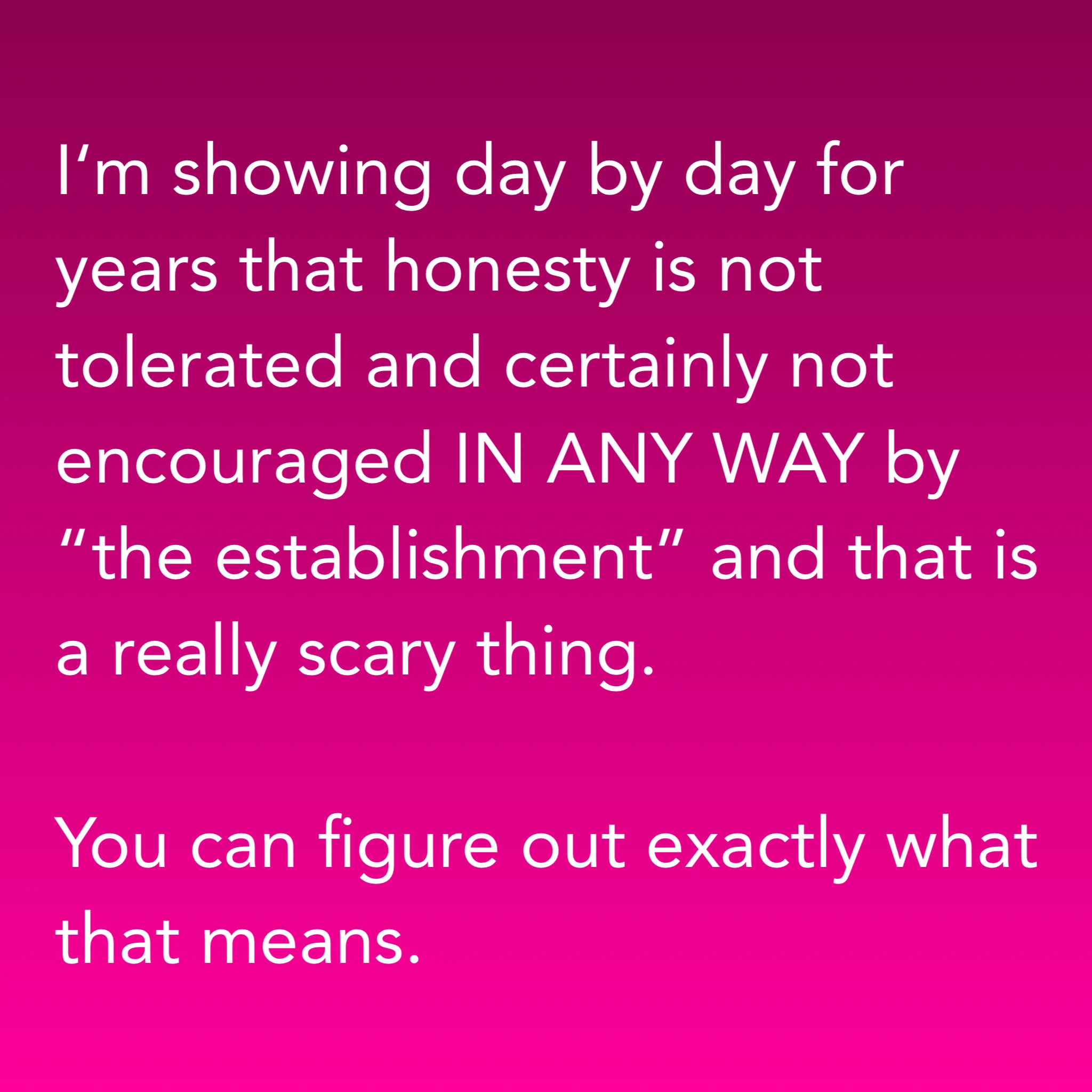 Ich zeige seit Jahren Tag für Tag, dass Ehrlichkeit vom „Establishment“ in keiner Weise toleriert und auf keinen Fall gefördert wird, und das ist eine wirklich beängstigende Sache.