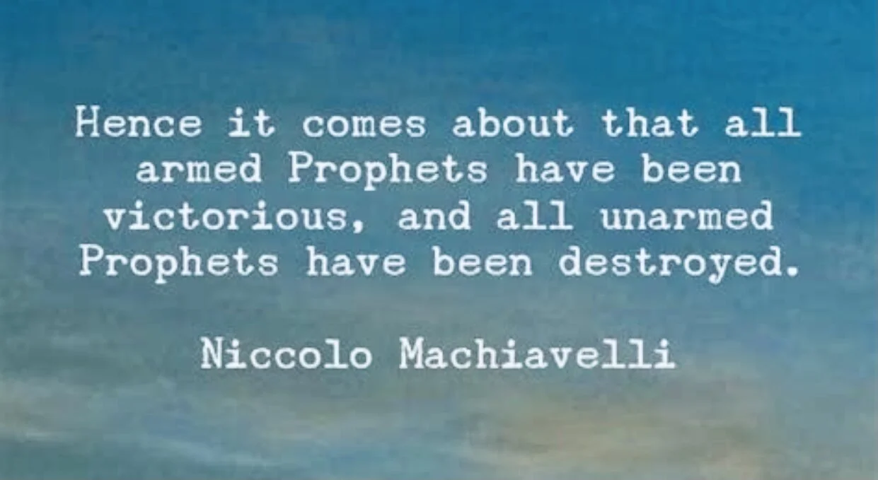 Hence it comes about that all armed Prophets have been victorious, and all unarmed Prophets have been destroyed. Niccolo Machiavelli February 28, 2021