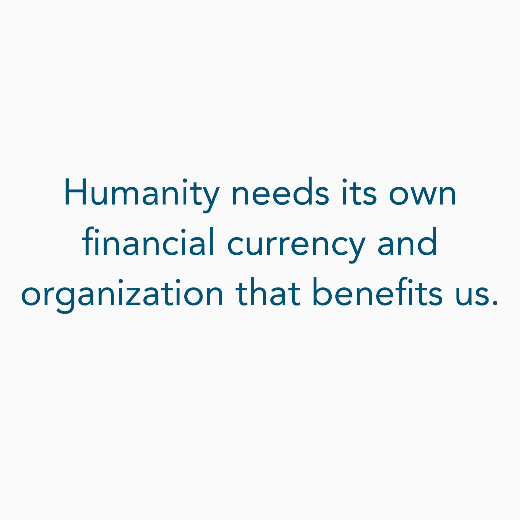 Die Menschheit braucht eine eigene finanzielle Währung und Organisation, von der wir profitieren.