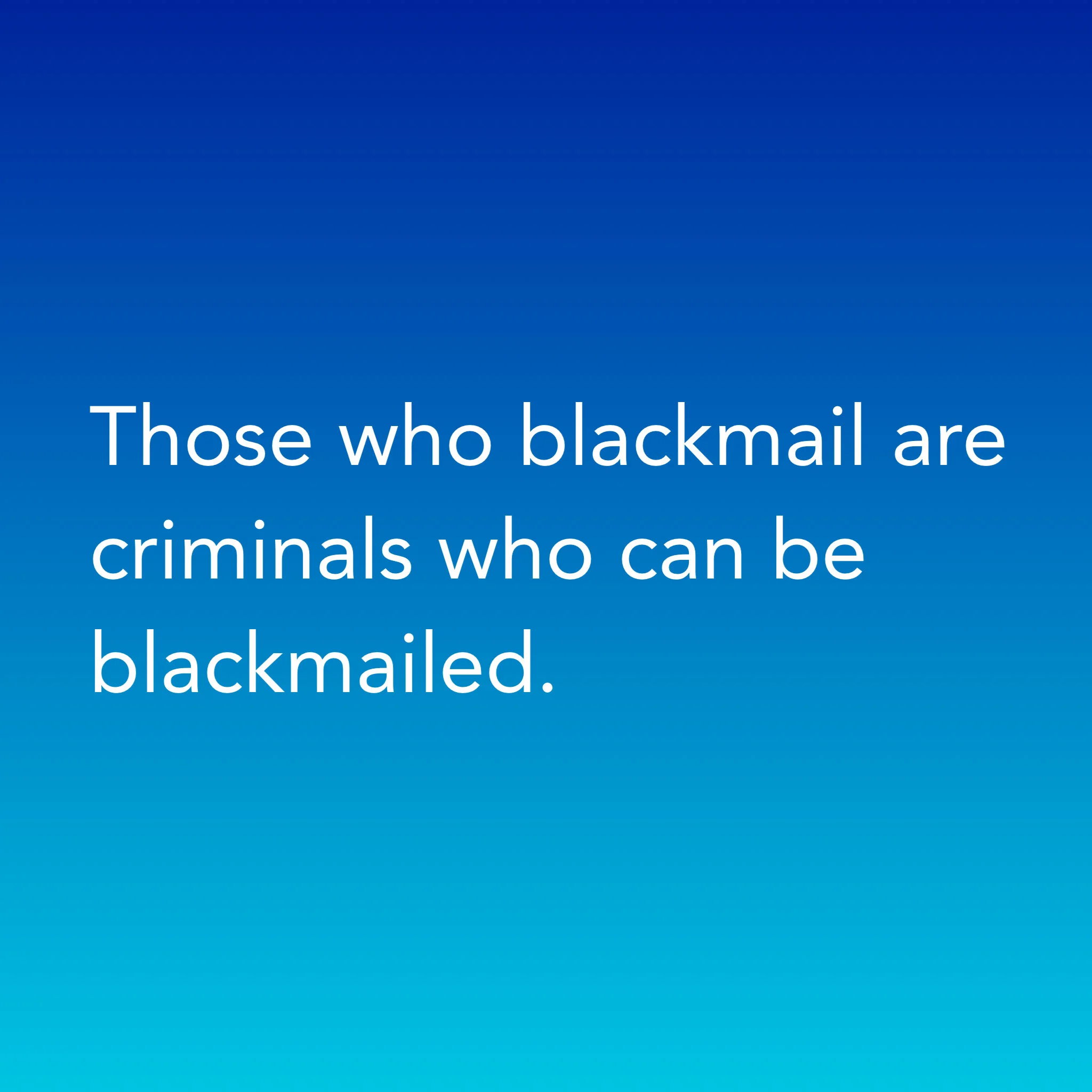 Those who blackmail are criminals who can be blackmailed.