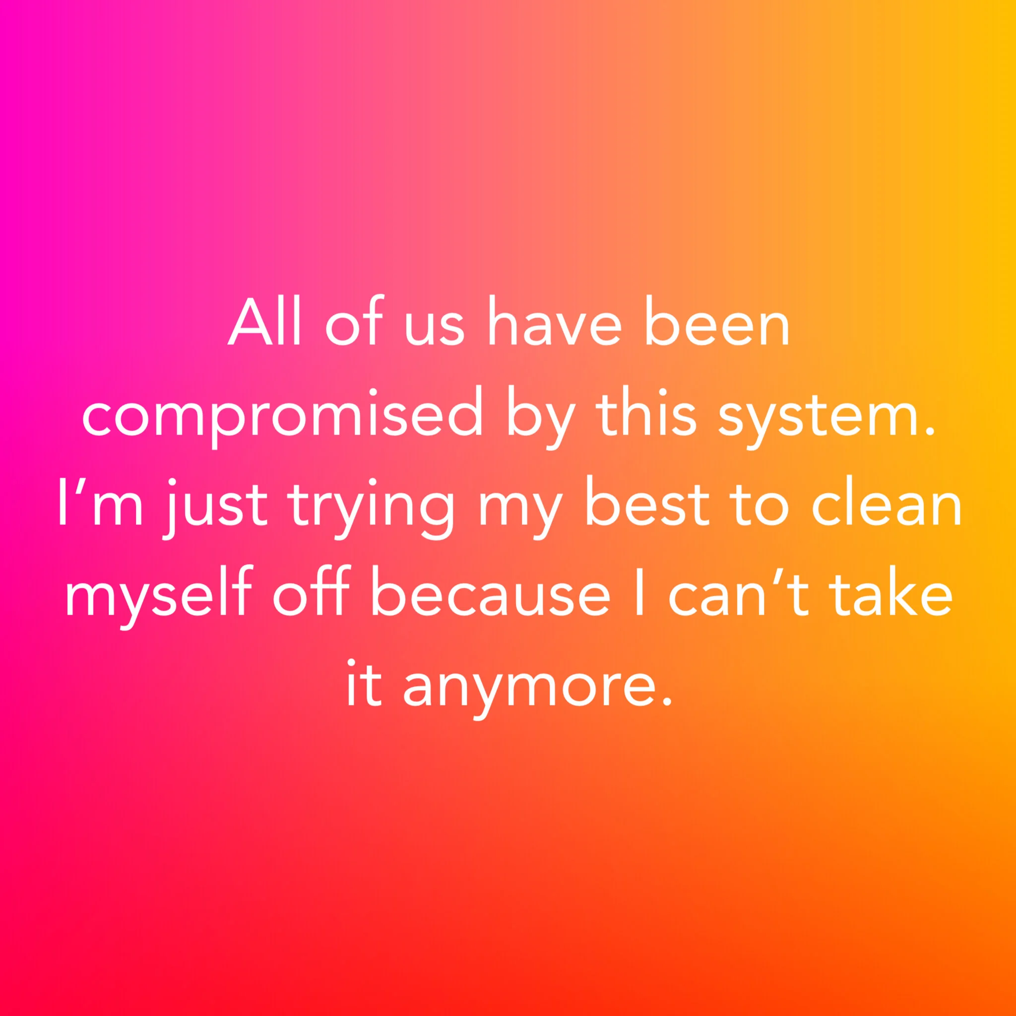 All of us have been compromised by this system. I’m just trying my best to clean myself off because I can’t take it anymore.