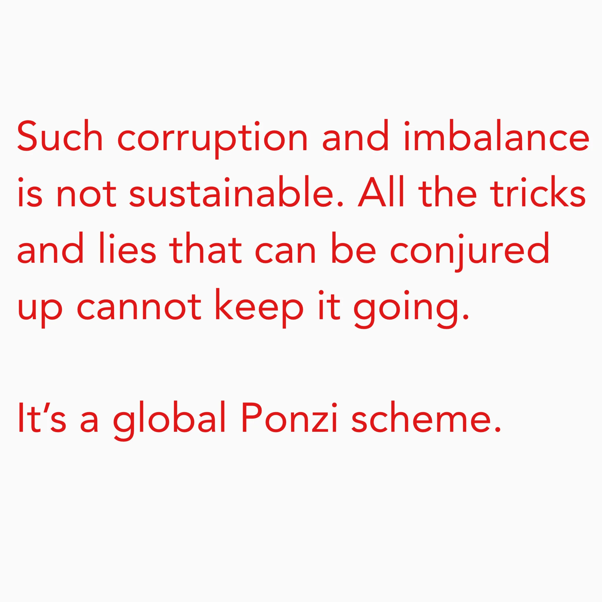 Such corruption and imbalance is not sustainable. All the tricks and lies that can be conjured up cannot keep it going.