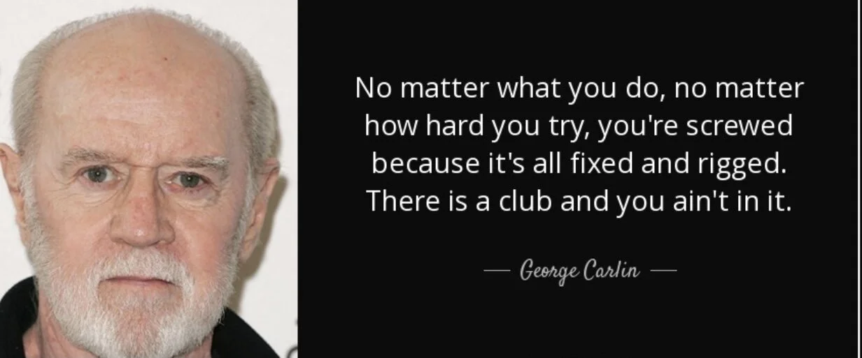 No matter what you do, no matter how hard you try, you're screwed because it's all fixed and rigged. There is a club and you ain't in it. George Carlin