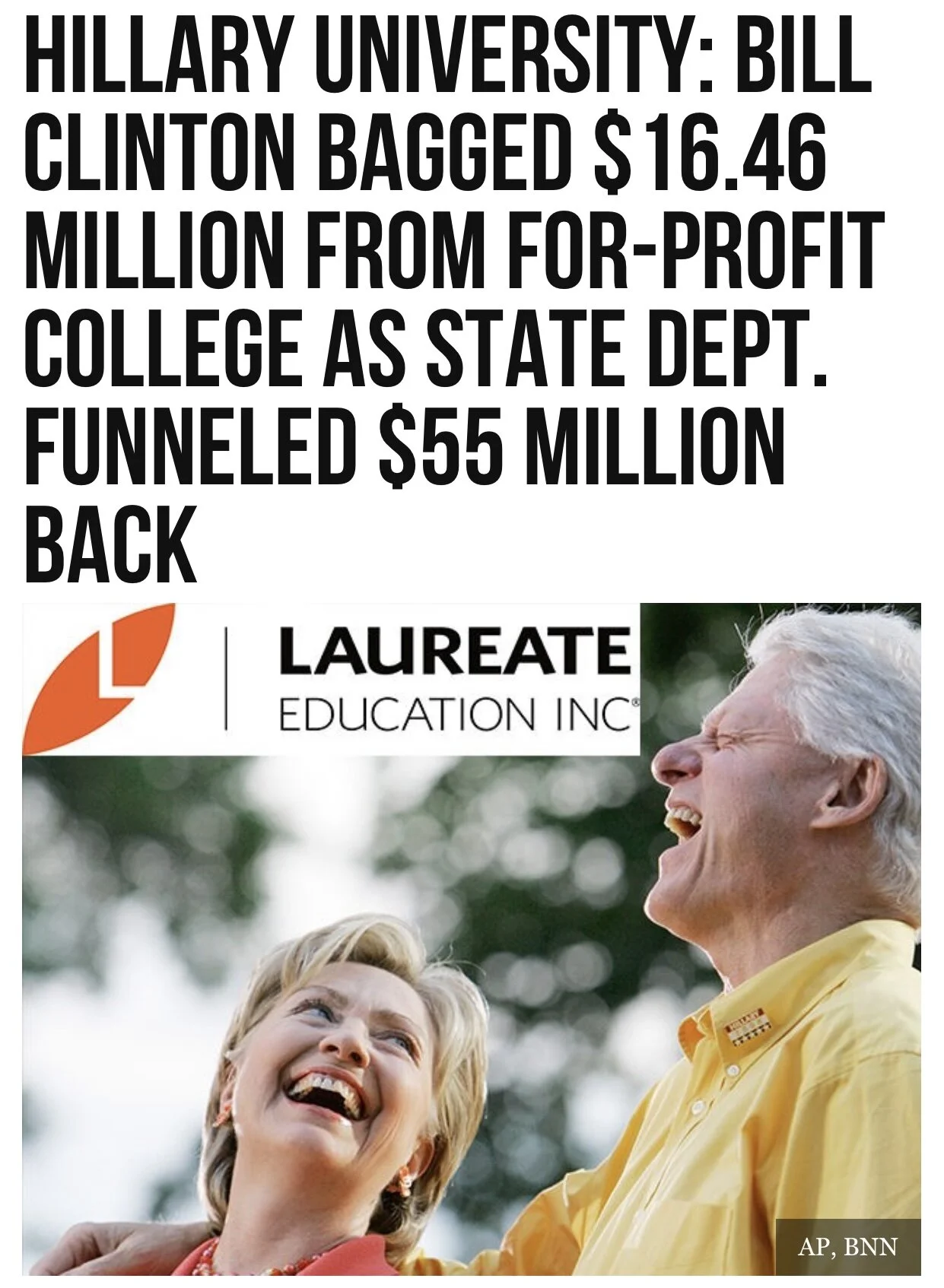 The title might have been “honorary," but Bill got paid for his services. How much? Bill raked in more than $16 million to be honorary chairman of Laureate from 2010–2015. Coincidentally, Bill would step down from this lucrative role the exact week news reports of the initial edition of this book and its reporting were published.