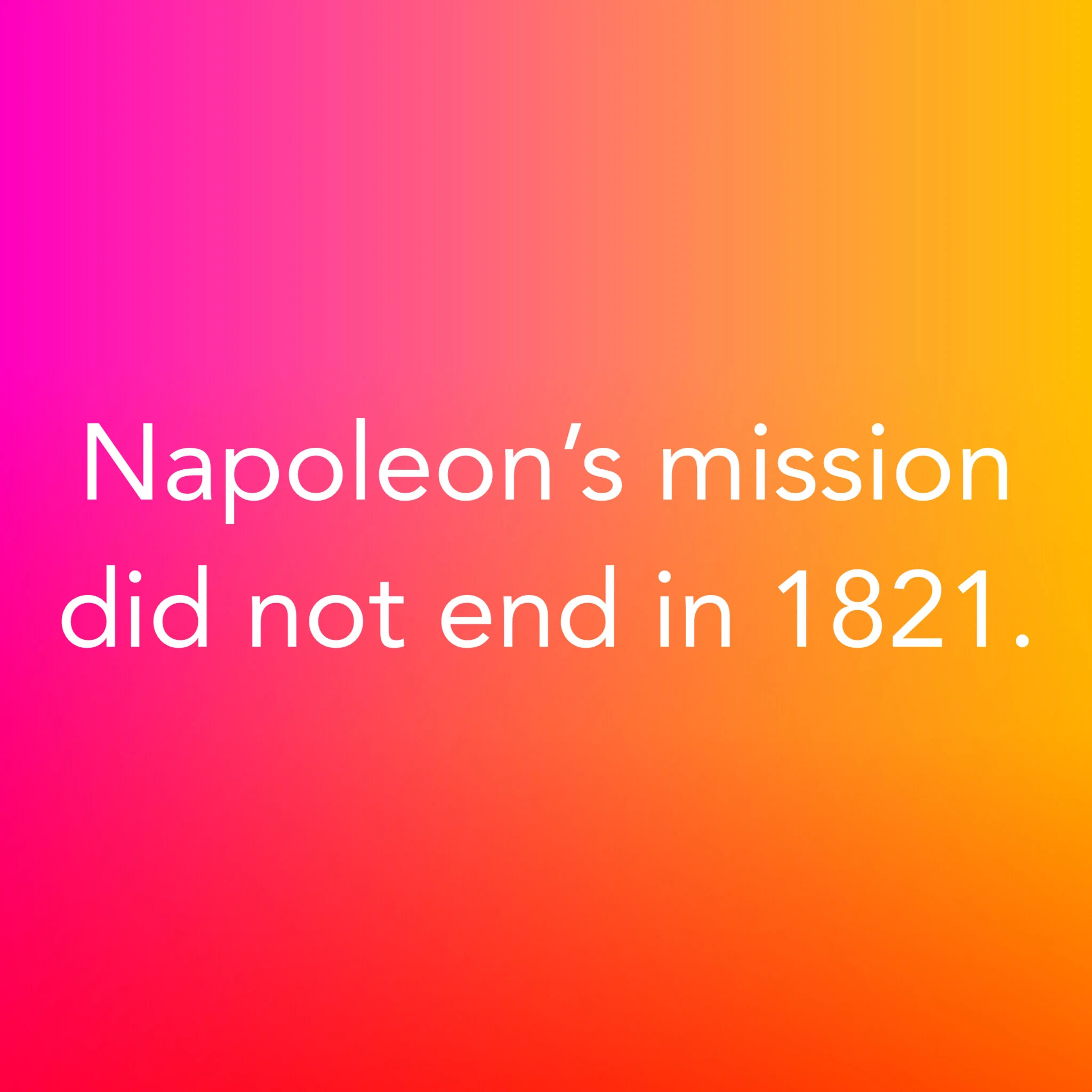 Napoleon’s mission did not end in 1821.