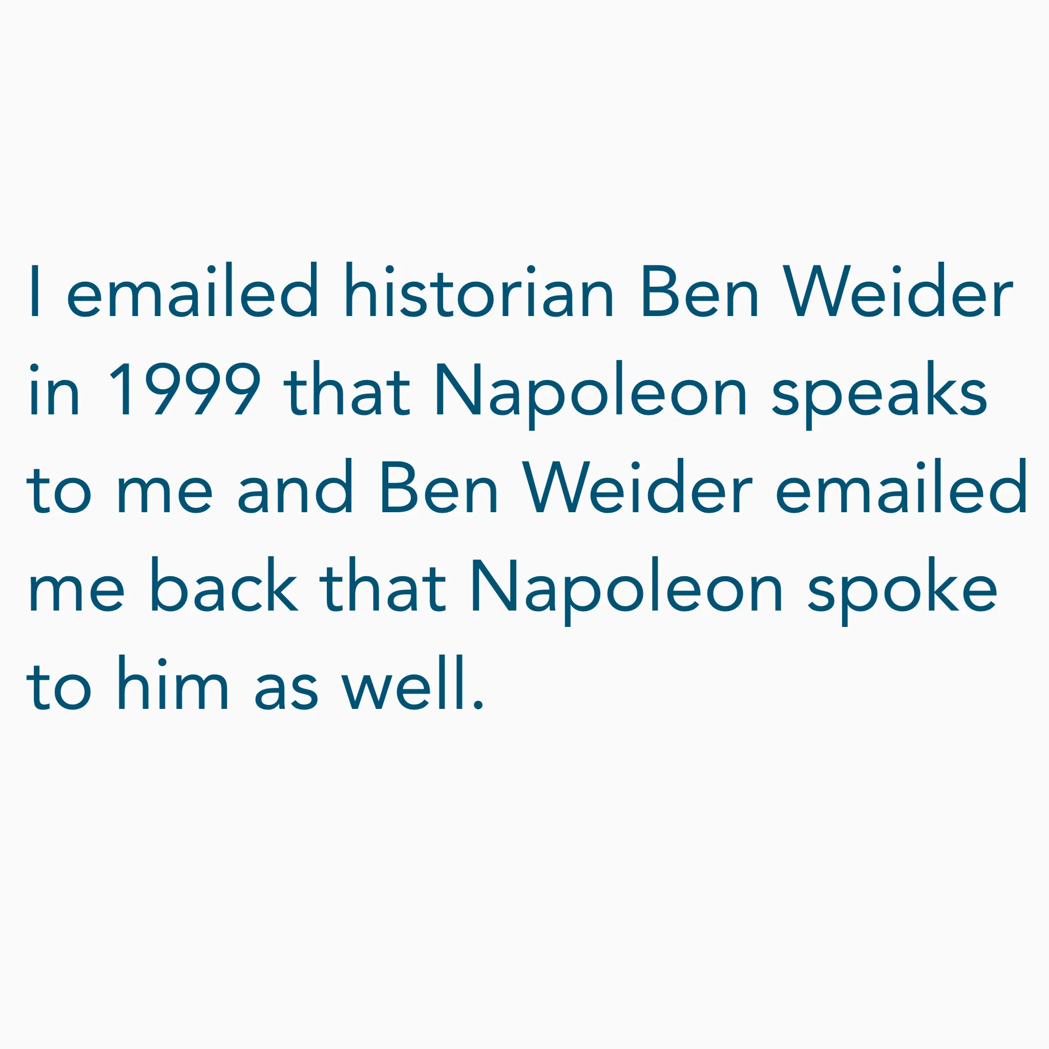 I emailed historian Ben Weider in 1999 that Napoleon speaks to me and Ben Weider emailed me back that Napoleon spoke to him as well.