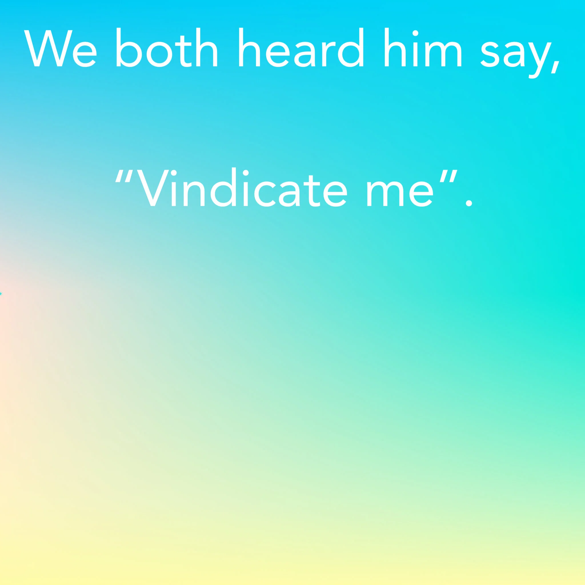 We both heard him say, “Vindicate me”.